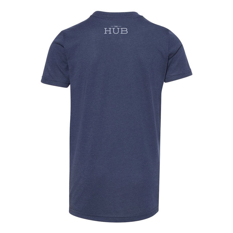 The youth version of our favorite, signature logo tee! This premium heathered navy t-shirt is perfect for the classroom or the playground. The tri-blend fabric creates a vintage, fitted look with extreme durability that makes this t-shirt withstand repeated washings and still remain super comfortable.
